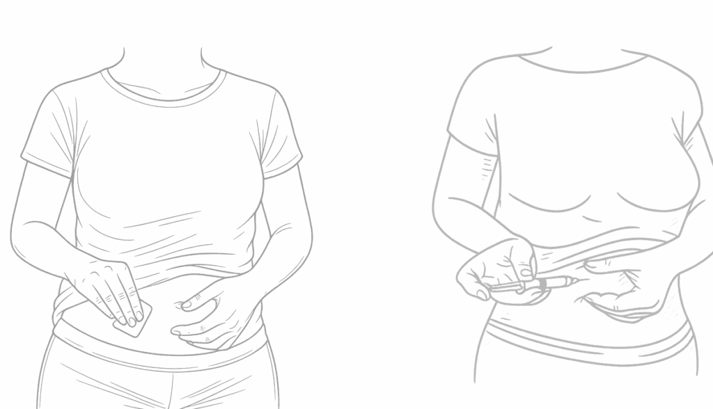 With the other hand, pinch together your belly skin between your index finger and thumb to form a small raised area. The recommended site is the fatty part of the belly.